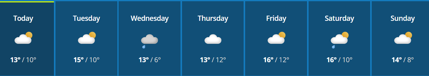 According to the Met Office weather forecast, we can be grateful for only 2/7 dull days this week :-)